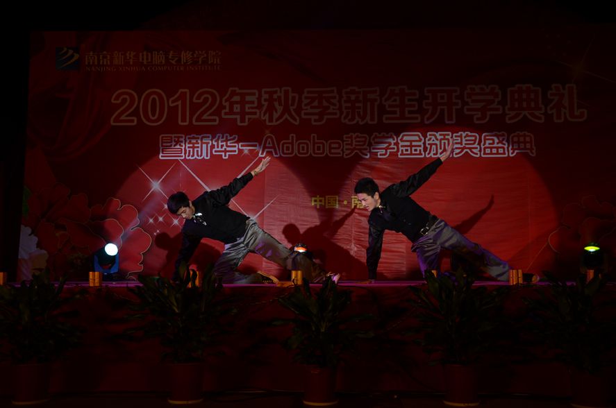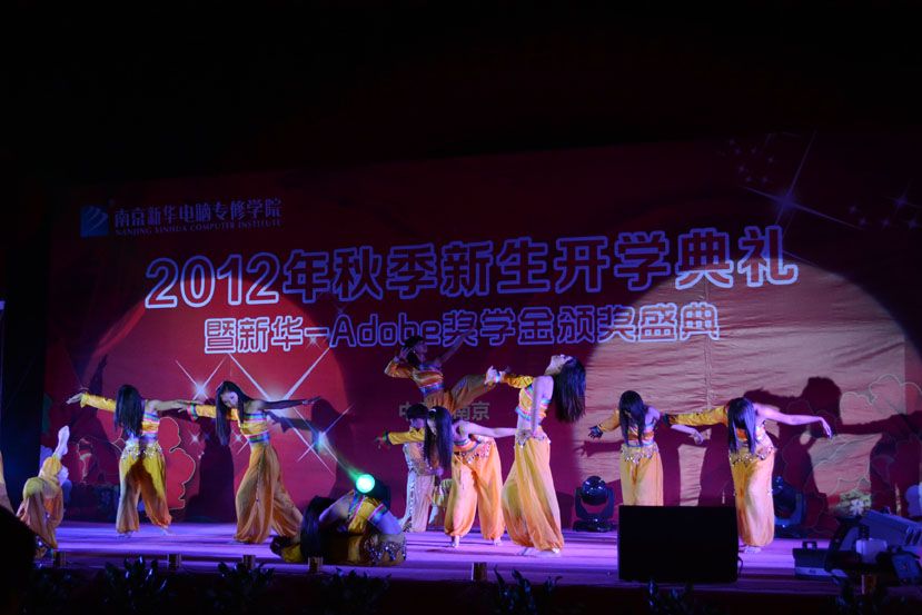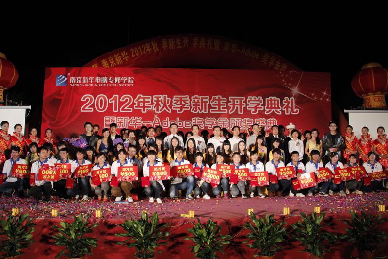 金秋九月,丹桂飘香。2012年9月25日,南京新华电脑专修学院彩旗飘扬,18点18分,全体师生精神抖擞的齐聚在学校广场。随着热情洋溢的《水鼓》舞蹈的演绎,学院2012年新生开学典礼暨Adobe奖学金颁奖盛典拉开了序幕。